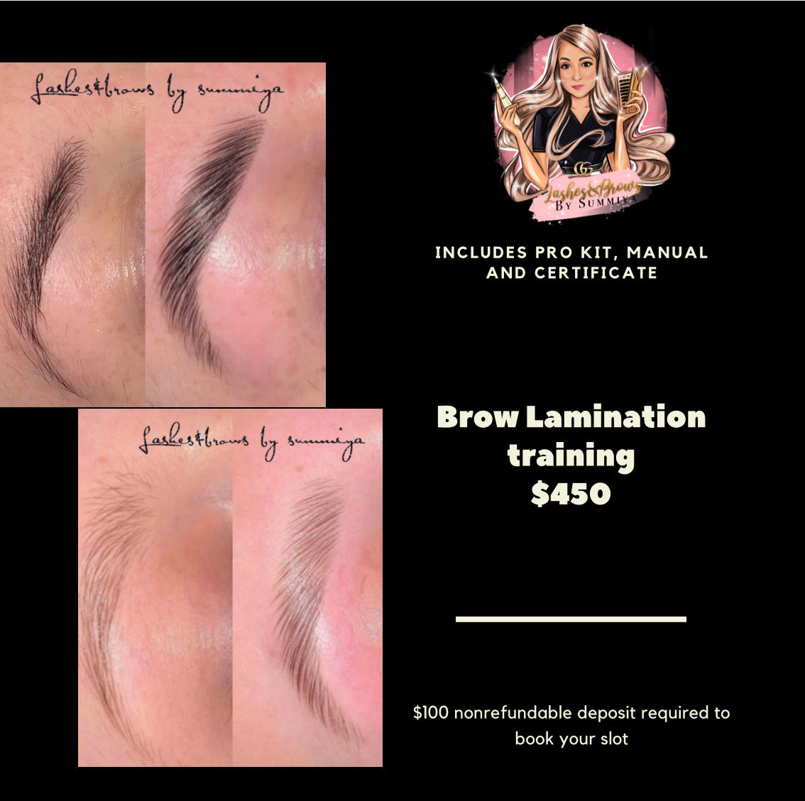 Brow lamination training deposit